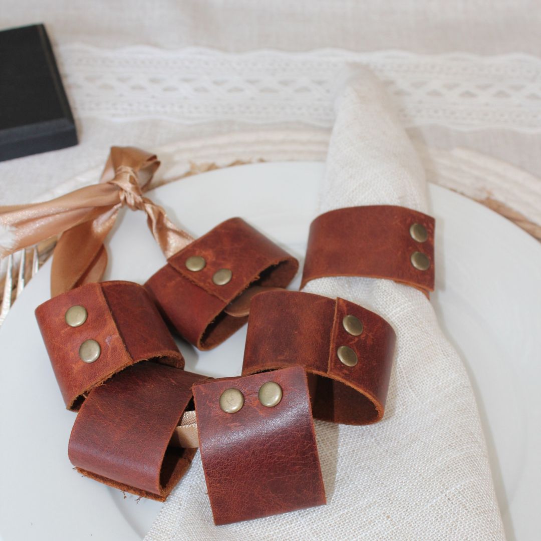 Leather Napkin rings x 6