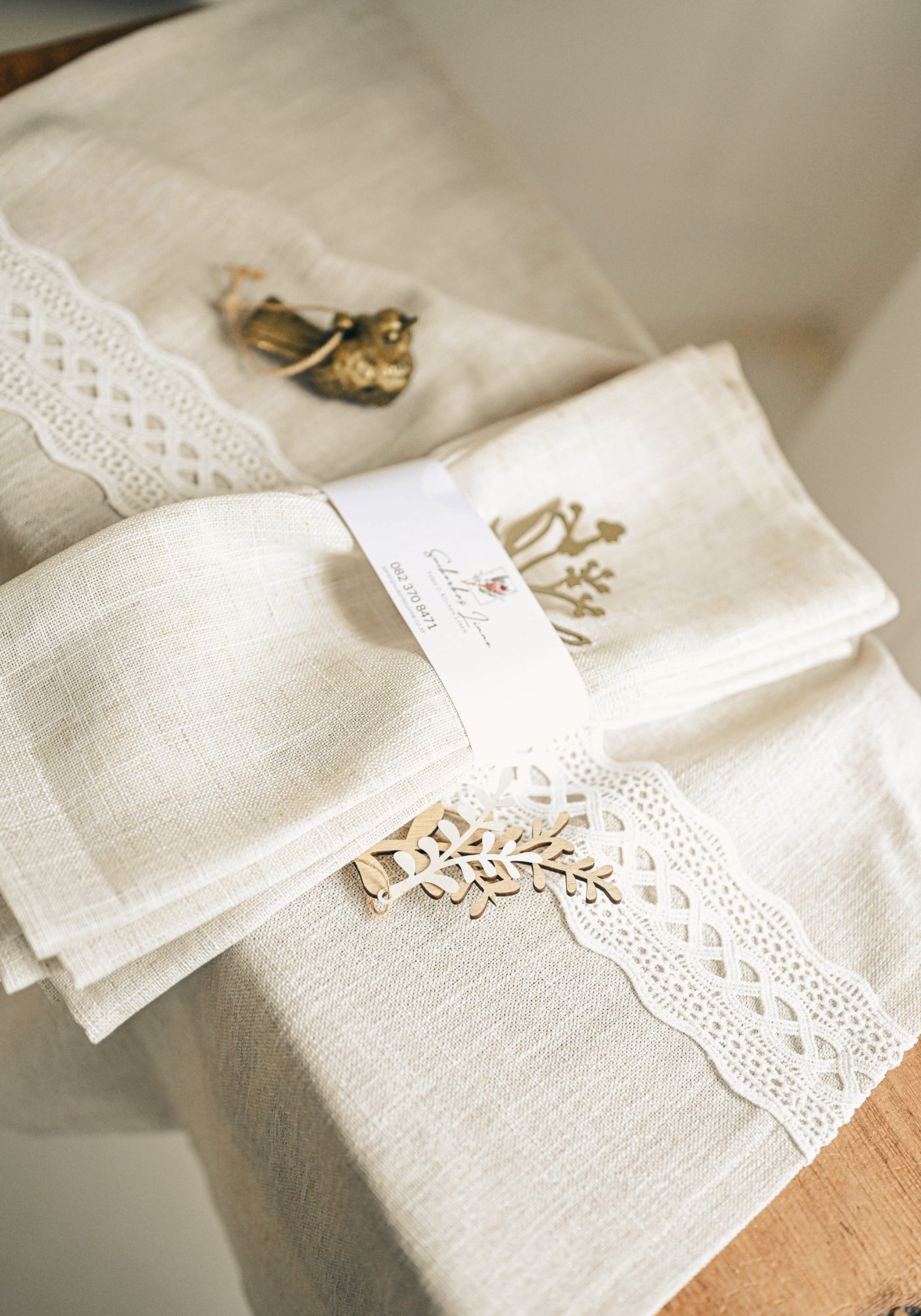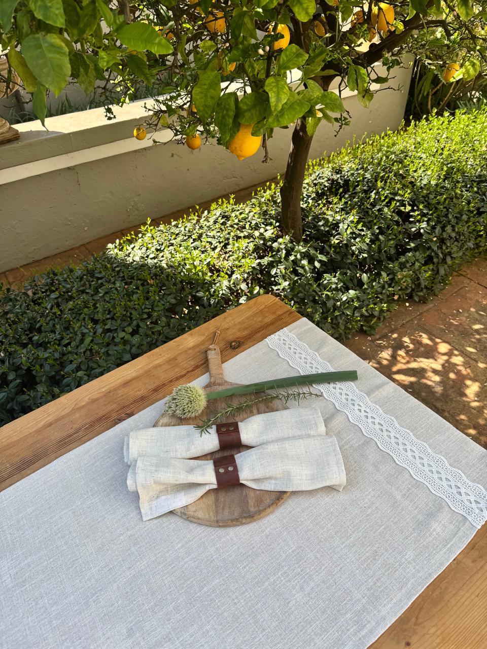 Linen Table Runner with Cotton Lace
